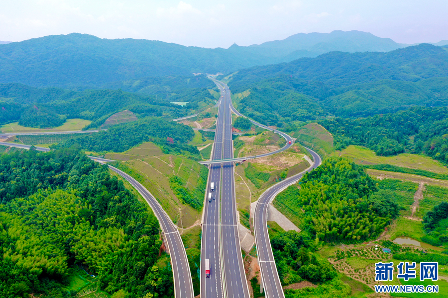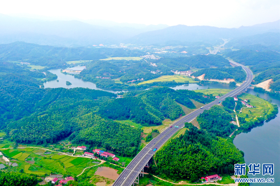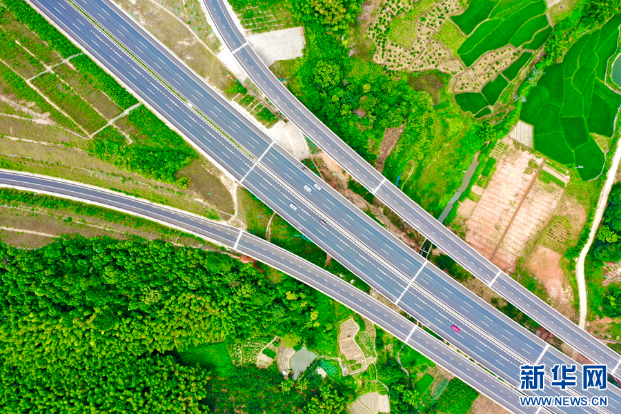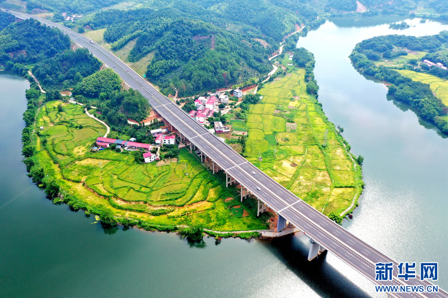 高速公路与沿线的山川、江河、田园相映成景,壮美如画。新华网发 尹其奇 摄