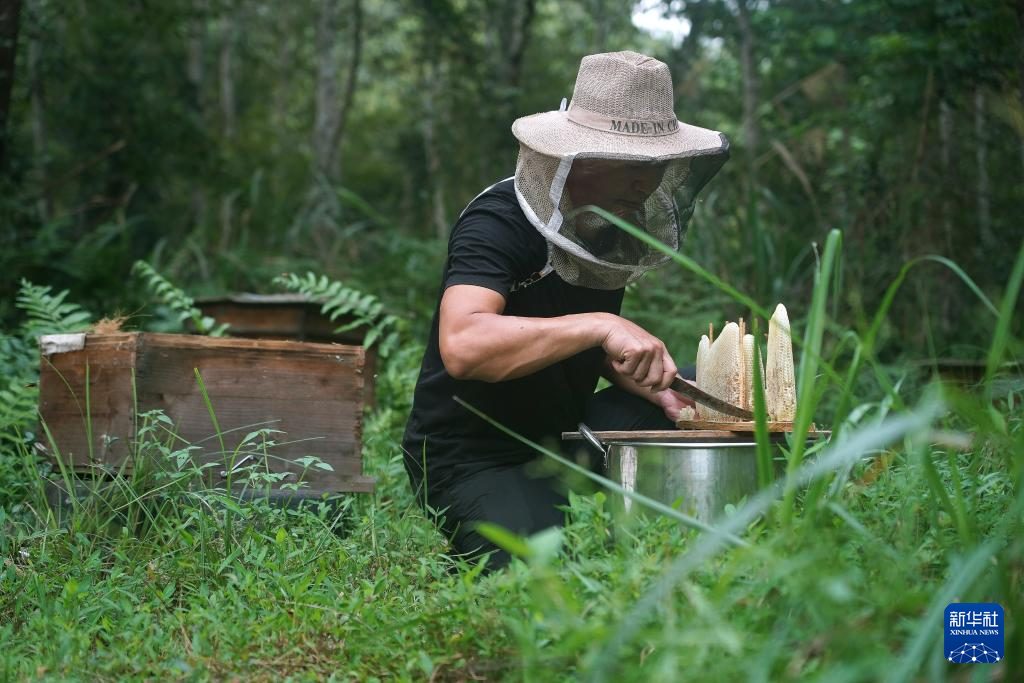 村民刘煌平用刀割蜜(8月24日摄)。新华社记者 万象 摄pagebreak