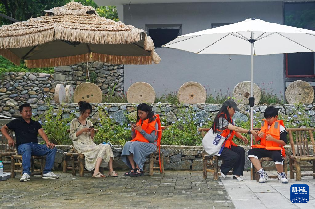 游客在码头休息区等待体验竹筏漂流(8月24日摄)。新华社记者 万象 摄pagebreak