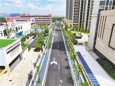 绿冠路工程项目西起富樱路,东止紫荆路,长度约344米,道路建设宽度18米,建设内容包括道路、排水、照明、绿化等工程。“该项目于2022年10月开工,今年9月下旬完工,比原计划提前1个月,目前正在验收阶段。”绿冠路工程项目负责人陈胜桃表示,项目完工后,将拉通加密紫荆路与青岚大道的联系,满足经开正荣府、万科金域国际等居住小区出行,极大地改善附近居民的出行条件。