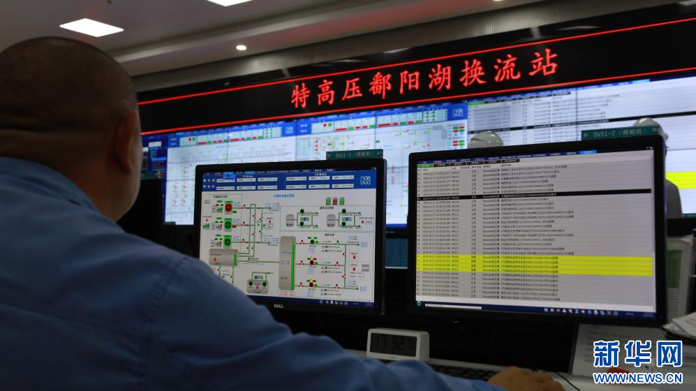 在特高压鄱阳湖换流站,工作人员在监控设备运行情况。新华网 王晓震 摄