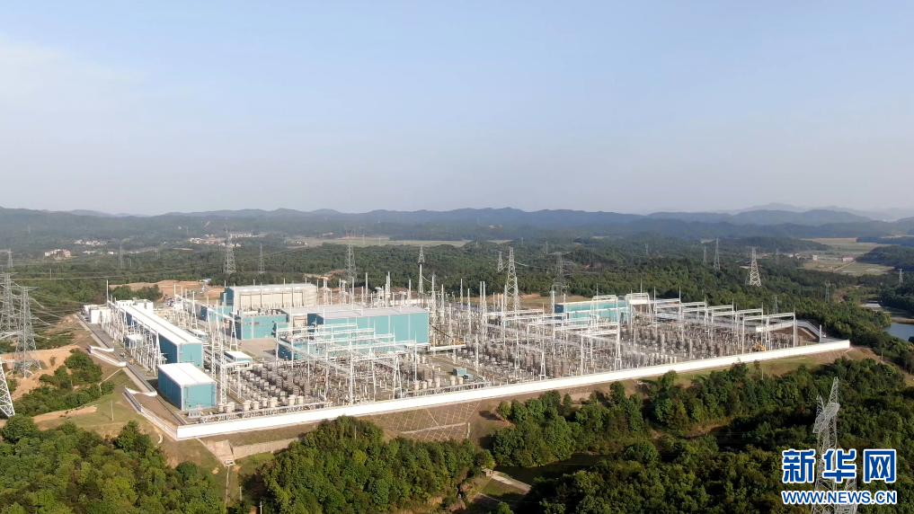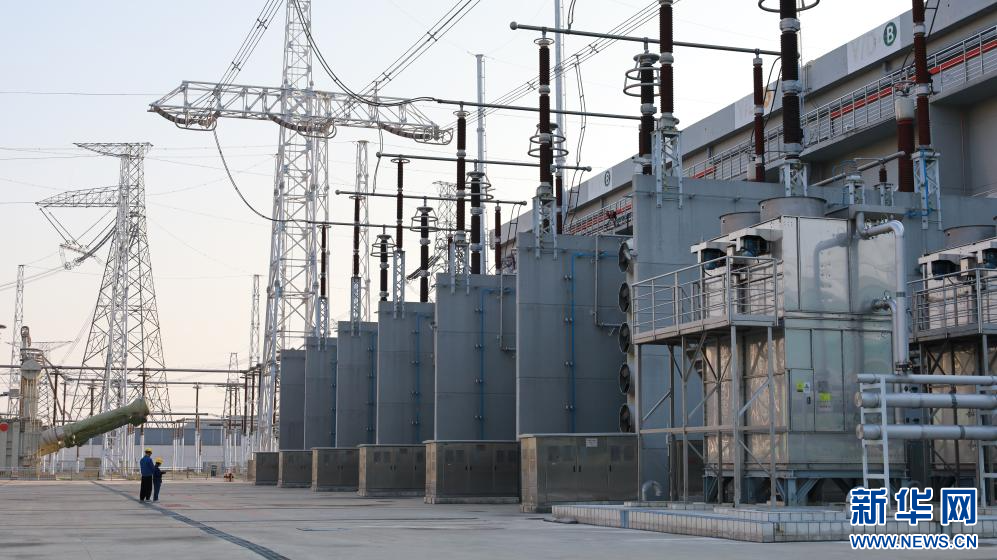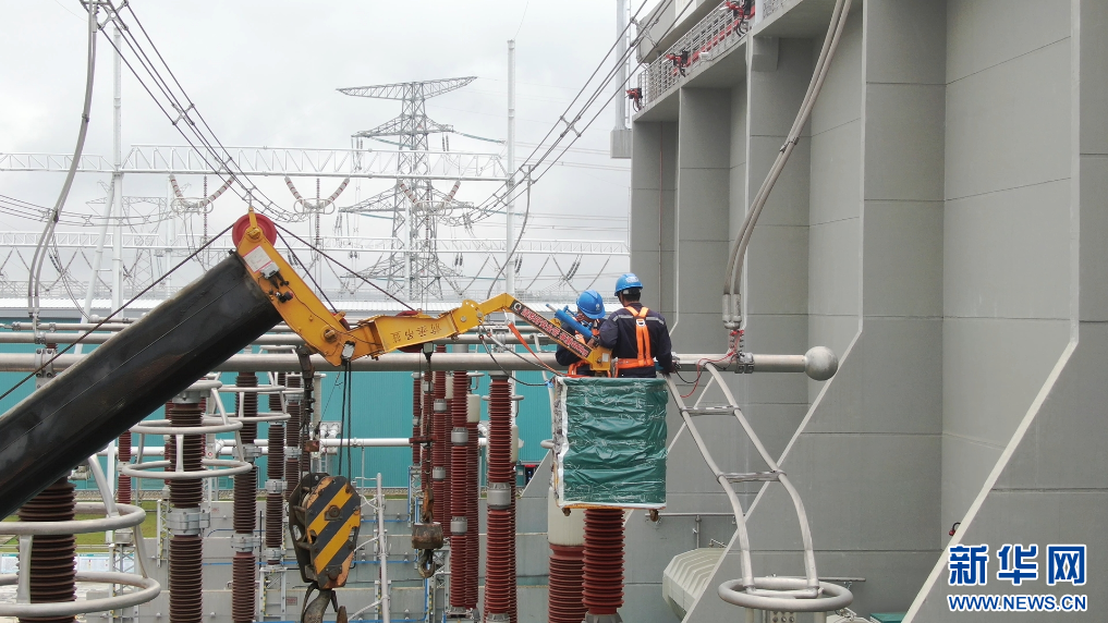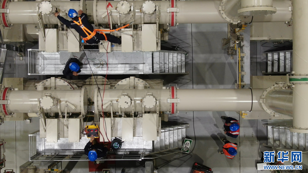 在特高压鄱阳湖换流站,工作人员在检修设备。新华网发