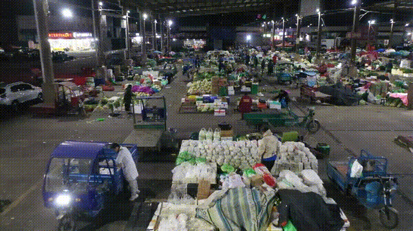 12月17日凌晨,在乐平市蔬菜批发大市场,各地的菜农把一车车的新鲜蔬菜运到这里,再由蔬菜批发商按区域和种类进行批发外销。