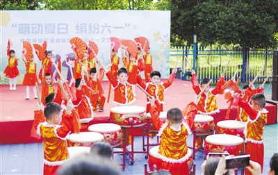 艾溪湖管理处组织各村(社区)开展趣味横生的“六一”主题活动。图为孩子们在进行文艺表演。洪观新闻记者 杨紫韬 摄