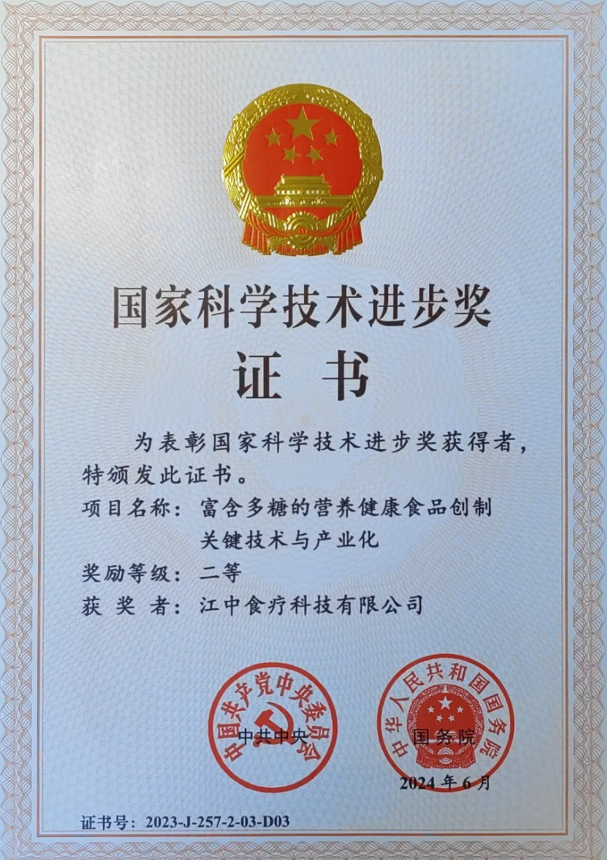 其中,由聂少平教授、谢明勇院士领衔,南昌大学、江中食疗科技有限公司等单位共同完成的《富含多糖的营养健康食品创制关键技术与产业化》项目,荣获国家科学技术进步奖二等奖。