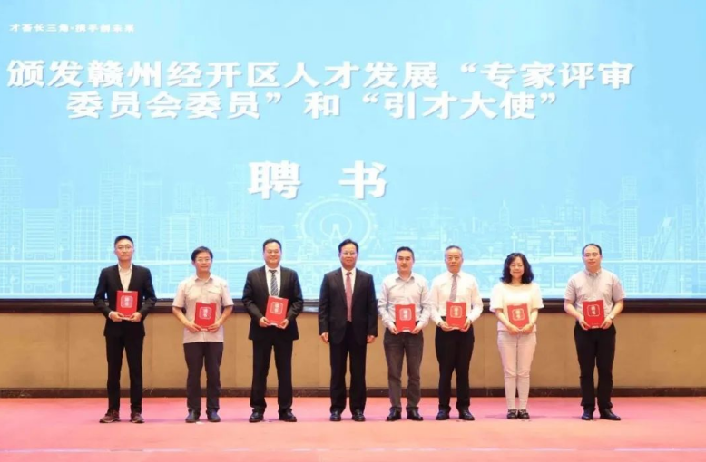 现场颁发了赣州经开区人才发展“专家评审委员会委员”和“引才大使”聘书。