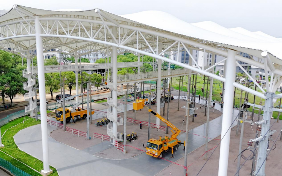 去年年底,江西电力职院加快实训场地改造步伐,对输配电实训场增设了遮挡顶棚,有效解决了室外实训受雨雪及严寒酷暑等天气因素的影响,实现全天候实训。