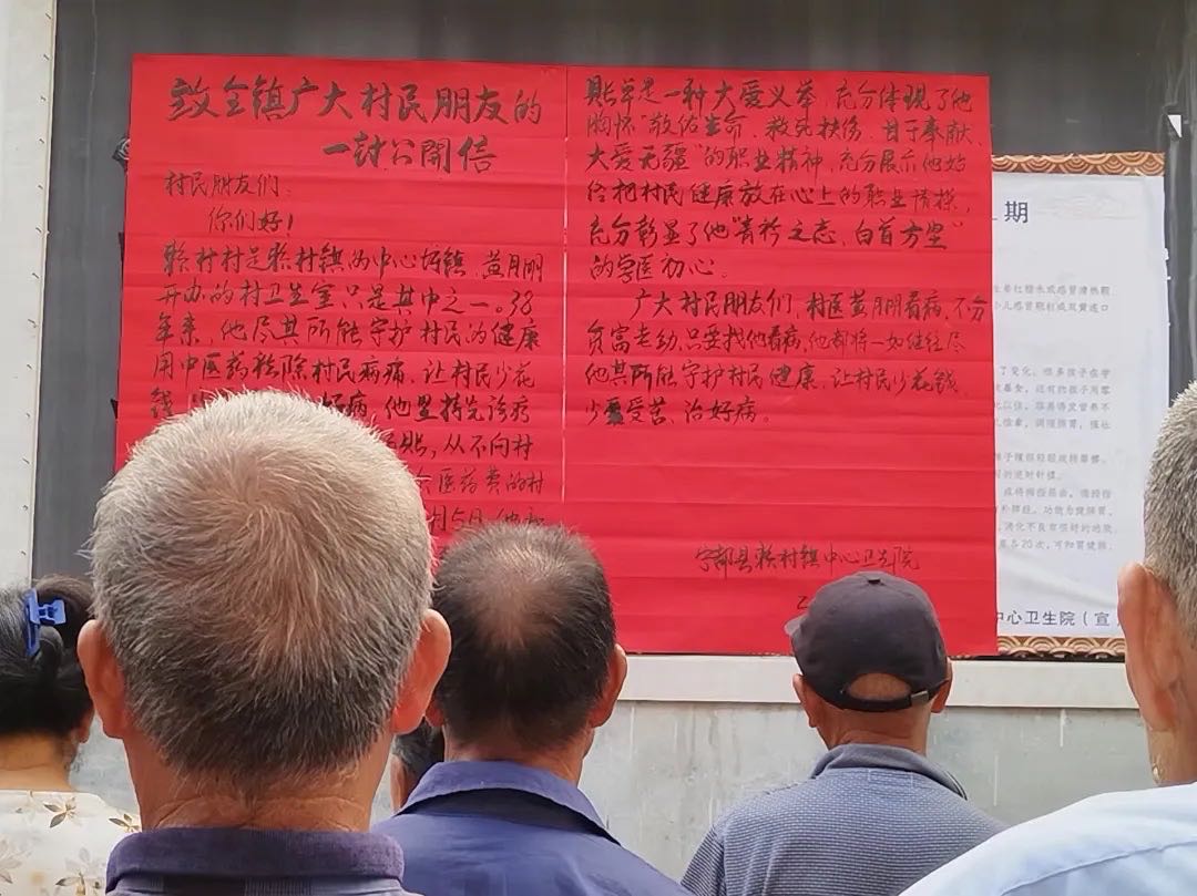 ▲7月8日,宁都县赖村镇中心卫生院贴出《致全镇广大村民朋友的一封公开信》,表扬乡村医生黄月明的善行义举。