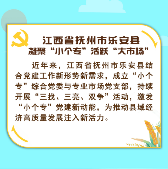 近年来,江西省抚州市乐安县结合党建工作新形势新需求,成立“小个专”综合党委与专业市场党支部,持续开展“三找、三亮、双争”活动,激发“小个专”党建新动能,为推动县域经济高质量发展注入新活力。