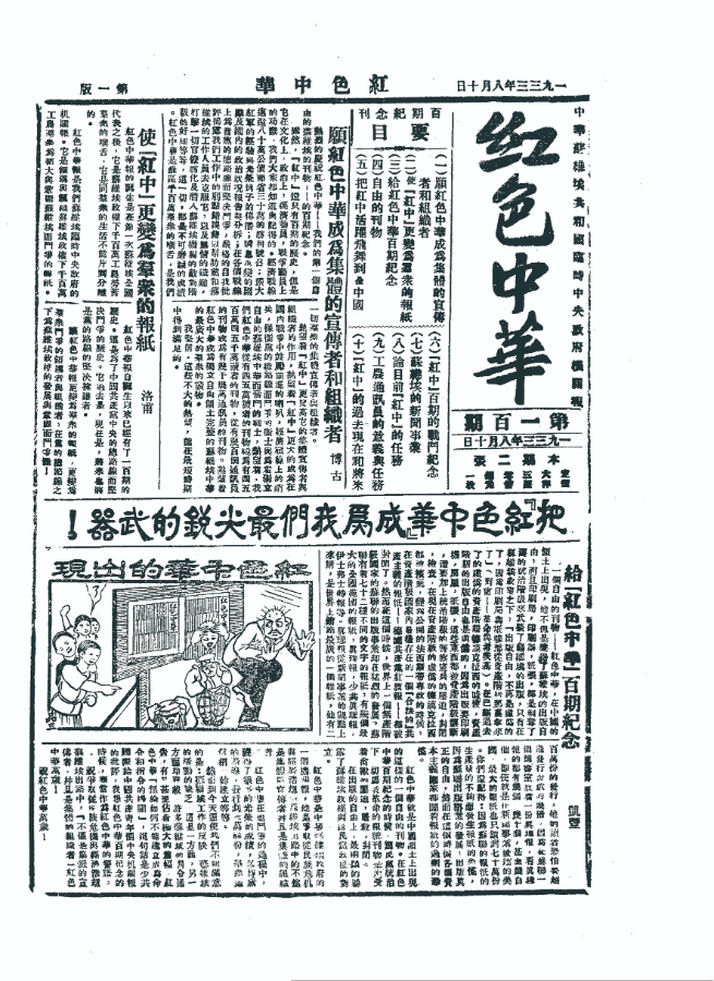 《红色中华》报创办百期时,张闻天刊文说,《红色中华》报的诞生是在第一次苏维埃全国代表大会之后,她是苏维埃政权下千百万工农劳苦群众的喉舌,她是同群众的生活不能分离的。