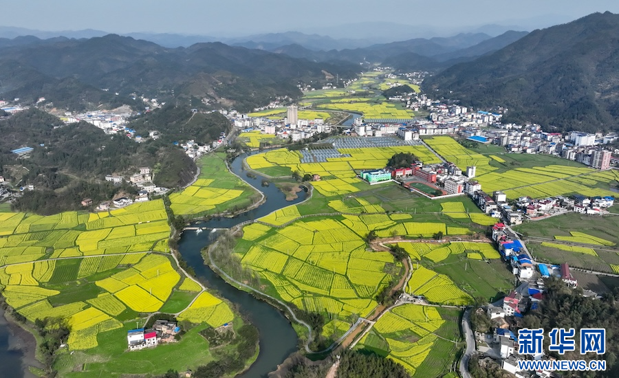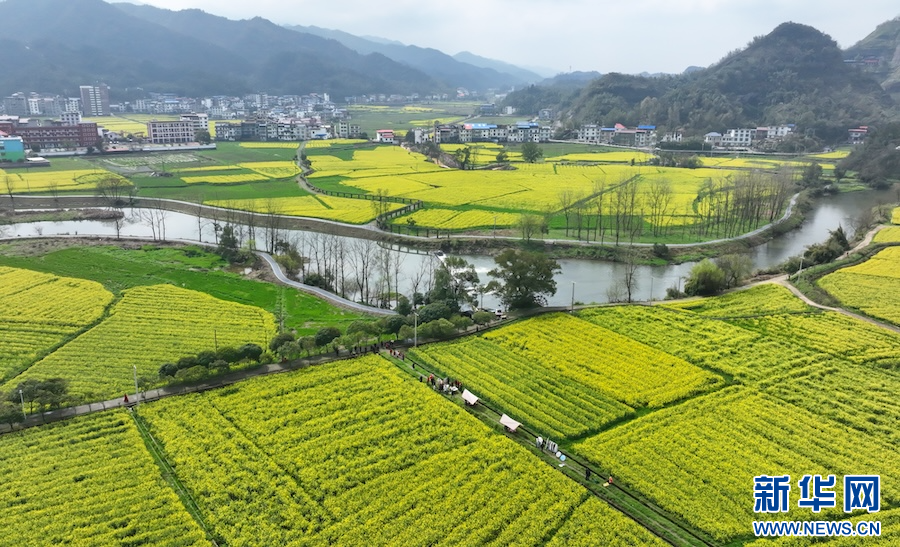 春日的江西省萍乡市湘东区东桥镇,万亩油菜花绽放。3月15日,“醉美花儿开 东桥等您来”赣湘边第十六届油菜花农文旅消费季暨乡村辣文化美食创意活动开幕。