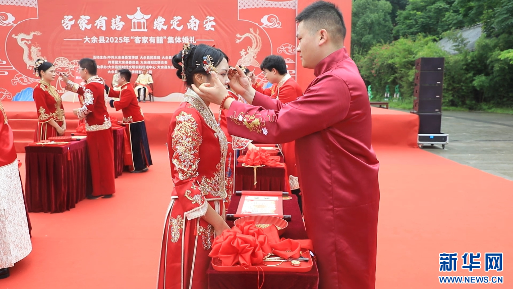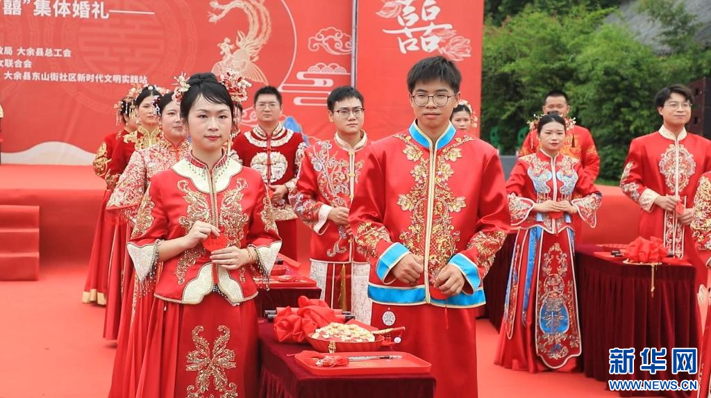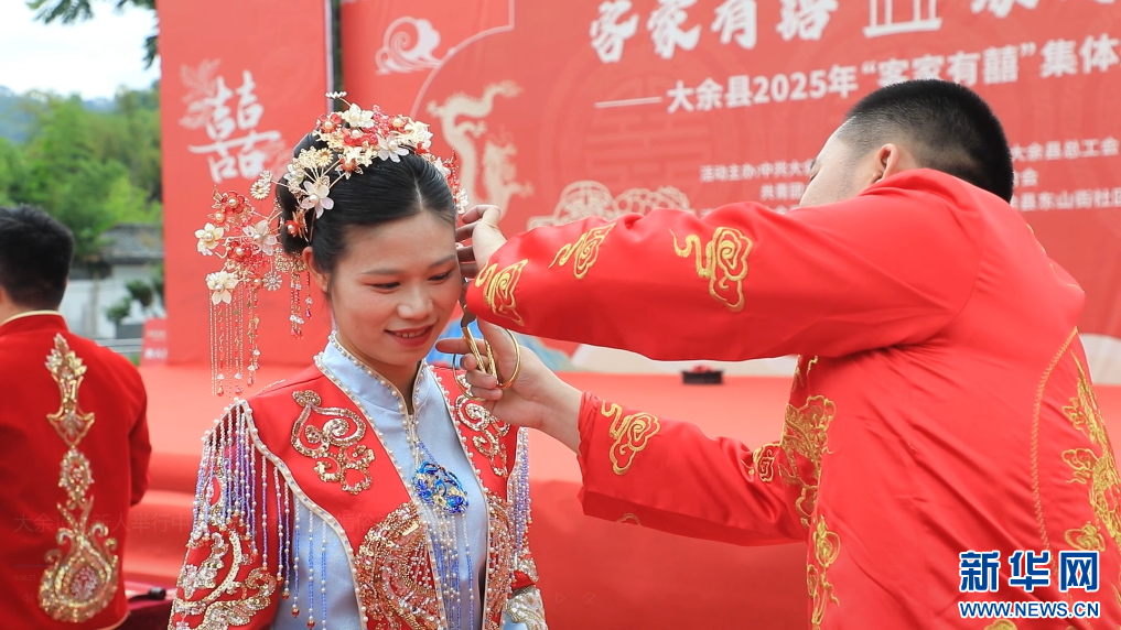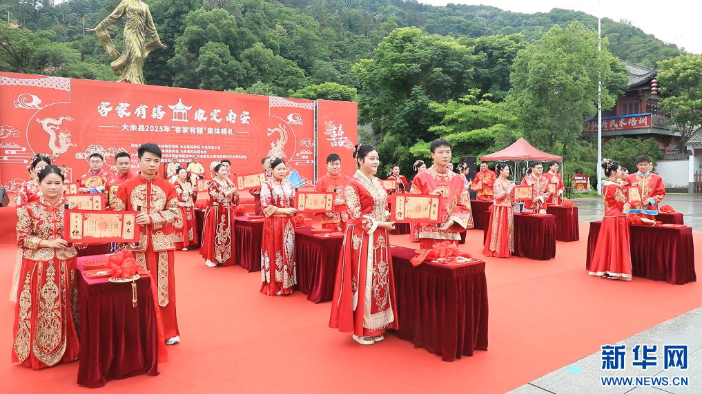 近日,江西省大余县“客家有囍 缘定南安”集体婚礼在牡丹亭文化园浪漫启幕。16对新人欢聚于此,身着精美传统服饰,以独具韵味的中式婚礼形式,携手步入婚姻殿堂。活动现场,主办方还邀请了钻石婚夫妇担任幸福见证官。他们不仅为新人们送上真挚的新婚祝福,还毫无保留地分享了多年来的婚姻经验,向现场观众详细讲解文明婚嫁礼仪,号召大家以实际行动传播婚育新风,树立和睦相处、互敬互爱的婚姻家庭观。