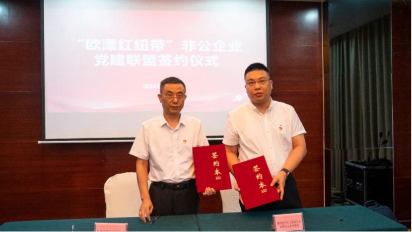 “欧潭红纽带”非公企业党建联盟签约仪式现场。