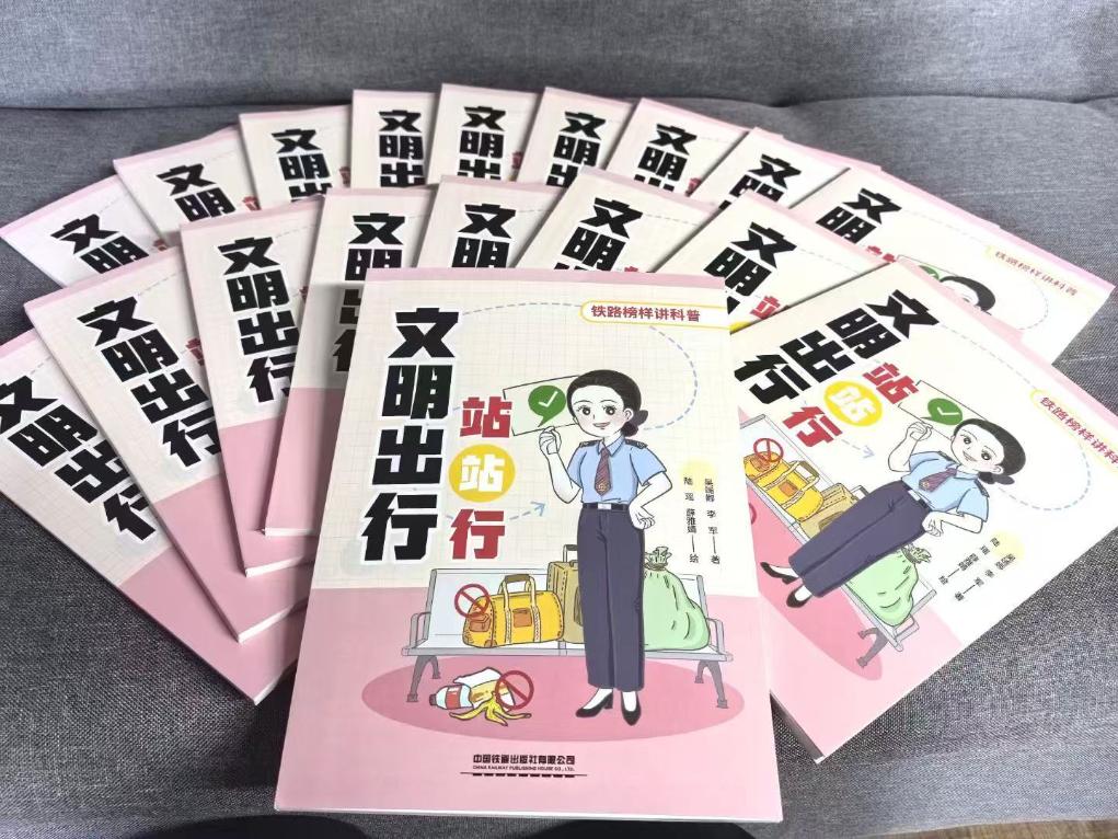 《文明出行 站站行》以铁路文明出行为主题,书内一共设置了51个场景,包括150余幅漫画。为了让漫画内容通俗易懂,可看性高,她不断思考如何构图。有时正吃着饭,灵感来了便马上放下筷子拿起画笔。虽然以往积累了许多与车站相关的绘画经验,但是印在书上什么效果、篇幅设置需要注意什么,对陆瑶来说都是需要不断尝试的。