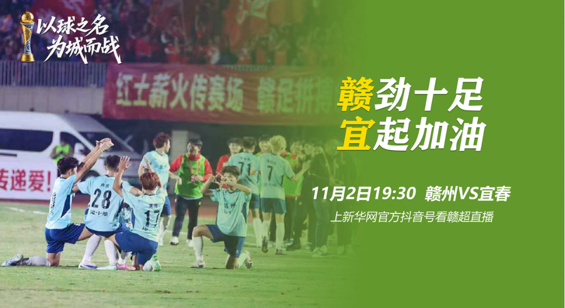 11月2日晚七点半,2025年江西省城市足球超级联赛(简称“赣超”)将迎来冠军巅峰之战,这场万众瞩目的决赛,将在宜春队与赣州队之间展开。新华网抖音号将对本场对决进行全程直播,足球评论界“名嘴”张路、刘建宏坐镇,负责赛事解说。