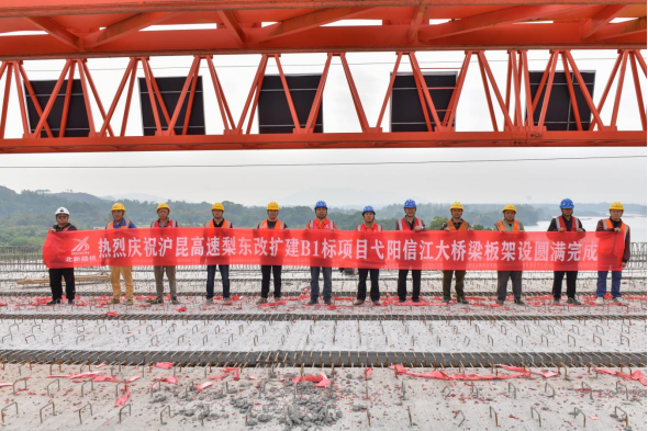 近日,随着弋阳信江大桥最后一片T梁精准落位,北新路桥集团广西北新建筑公司(长沙分公司)沪昆高速梨东改扩建B1标项目梁板架设任务圆满完成,标志着项目建设取得重要阶段性突破。
