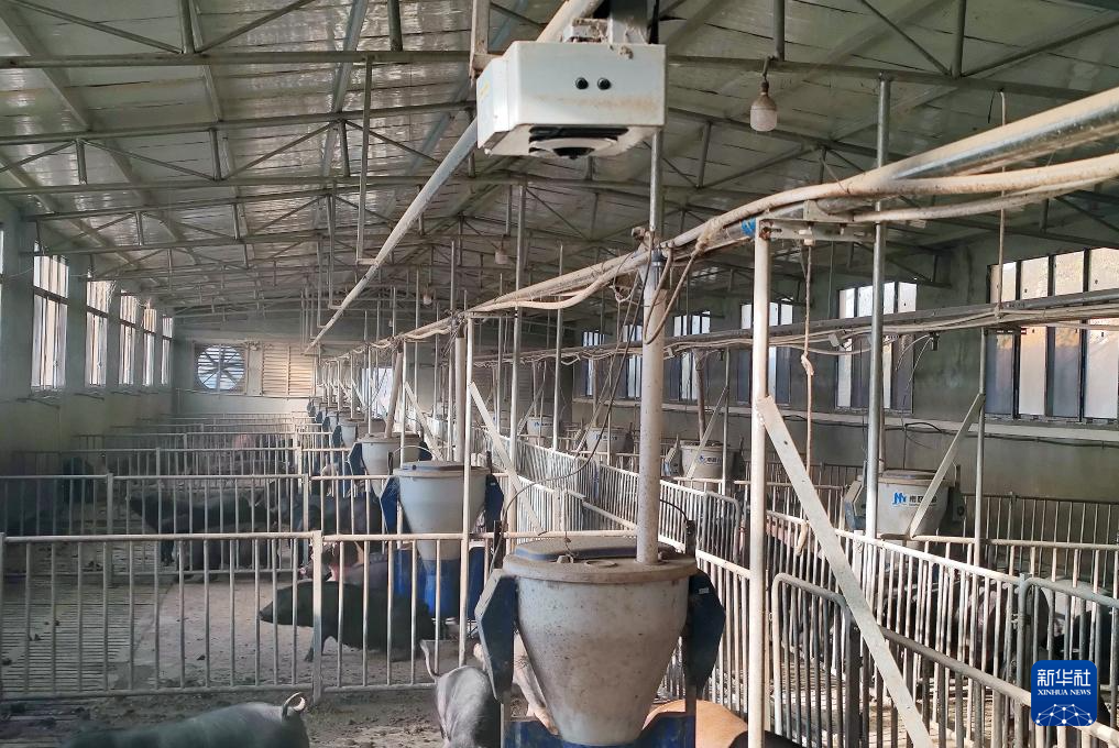 在位于江西省修水县港口镇龙井村的幕村杭猪生态农场里,智能投喂系统在给杭猪投食(12月3日摄)。新华社发(朱长华 摄)pagebreak