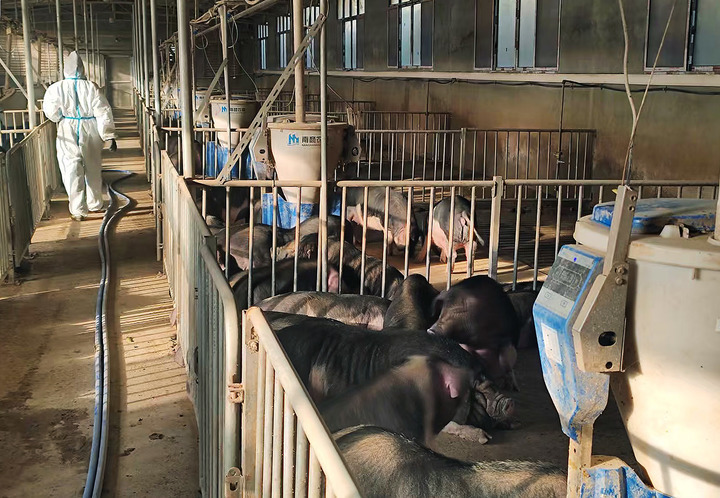 2018年,突如其来的非洲猪瘟疫情,让周边不少猪场相继“中招”。为守住农场和修水杭猪的种源,夫妻俩第一时间对农场实行全封闭管理,和几名核心员工吃住在农场里。三个月里,卢丹的手被消毒水浸得发白开裂。“修水杭猪是咱们本地的宝贝,绝不能在我们手里断了种。”靠着这份坚持,他们终于守住了农场,保住了国家农产品地理标志产品——修水杭猪的珍贵活体种源。