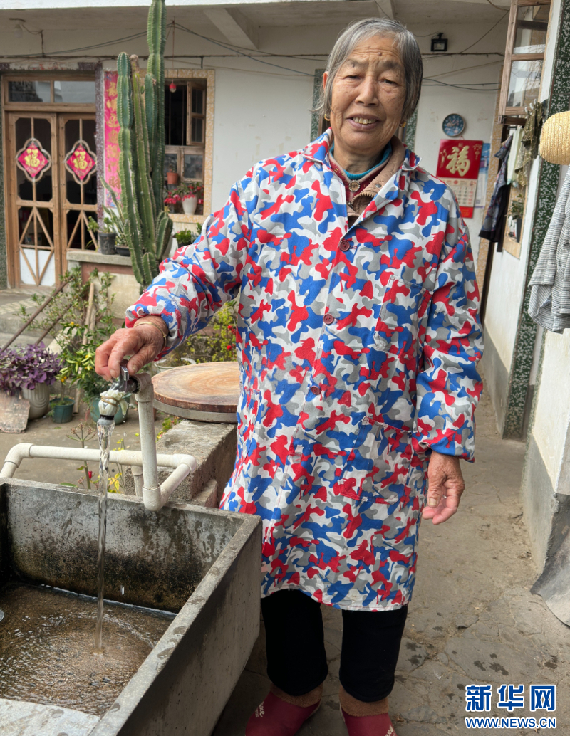 2026年1月,寻乌县罗珊乡村民拧开新建的自来水龙头,用上放心水。(受访者供图)