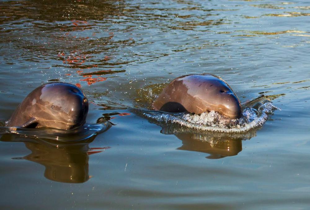江豚在鄱阳湖中游戈(傅建斌 摄)