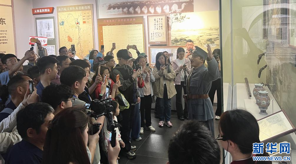 游客在南昌八一起义纪念馆围观快闪表演。新华网 王晓震 摄