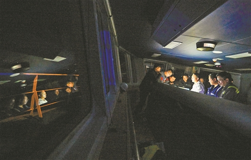 3月14日晚,“宁远电鲲”轮在东海进行航行试验,技术人员紧盯仪表盘上的相关参数。